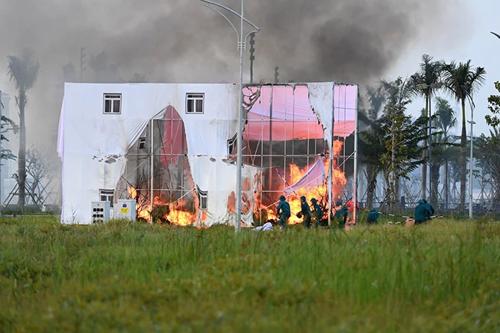 Dân quân quận Cái Răng tham gia diễn tập khu vực phòng thủ quận năm 2023.