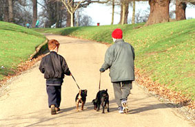 Dắt chó đi dạo vừa giúp giữ gìn vóc dáng vừa có lợi cho sức khỏe tim mạch. Ảnh: Corbis |