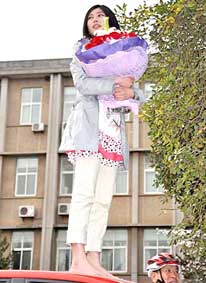 1 thiếu nữ Trung Quốc vừa bị một phen “ê mặt” trước đám đông khi nàng đề nghị người yêu rước mình về dinh nhưng chàng đã thẳng thừng khước từ. Kế hoạch cầu hôn lãng mạn này vừa diễn ra tại Đại học Vũ Hán trong lễ hội ngắm hoa anh đào. Sau khi gửi tin nhắn bảo bạn trai đến chỗ hẹn, cô gái trèo lên nóc chiếc ô tô của mình với bó hoa hồng trên tay (ảnh). Trên kính chắn gió của xe còn gắn 2 dòng chữ to tướng “Hãy kết hôn với em”.