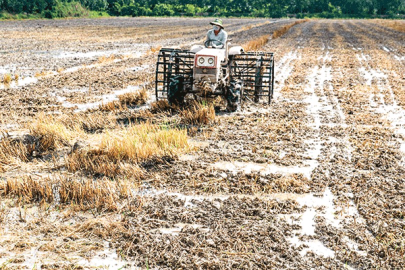 Nông dân ở phường Trung Kiên, quận Thốt Nốt làm đất chuẩn bị gieo sạ lúa hè thu.