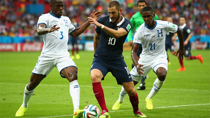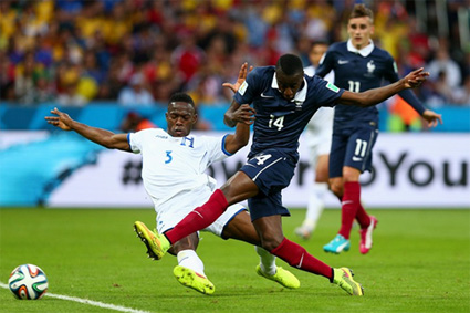 Figueroa của Honduras nỗ lực cản cú sút của Blaise Matuidi. Ảnh: FIFA |