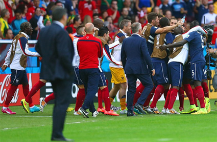 Đội tuyển Pháp mừng chiến thắng ngày đầu ra quân World Cup. |