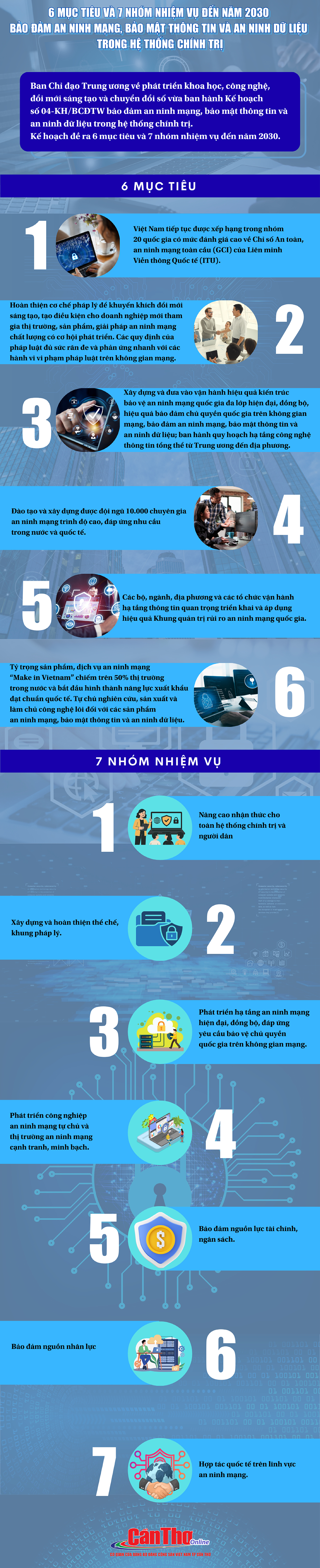 ![[INFOGRAPHICS] 6 mục tiêu và 7 nhóm nhiệm vụ đến năm 2030 bảo đảm an ninh mạng, bảo mật thông tin và an ninh dữ liệu trong hệ thống chính trị [INFOGRAPHICS] 6 mục tiêu và 7 nhóm nhiệm vụ đến năm 2030 bảo đảm an ninh mạng, bảo mật thông tin và an ninh dữ liệu trong hệ thống chính trị](https://baocantho.com.vn/image/news/2026/20260222/thumbnail/336x224/1771830762.webp)