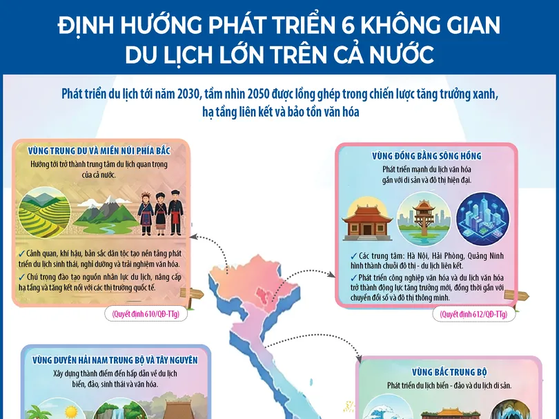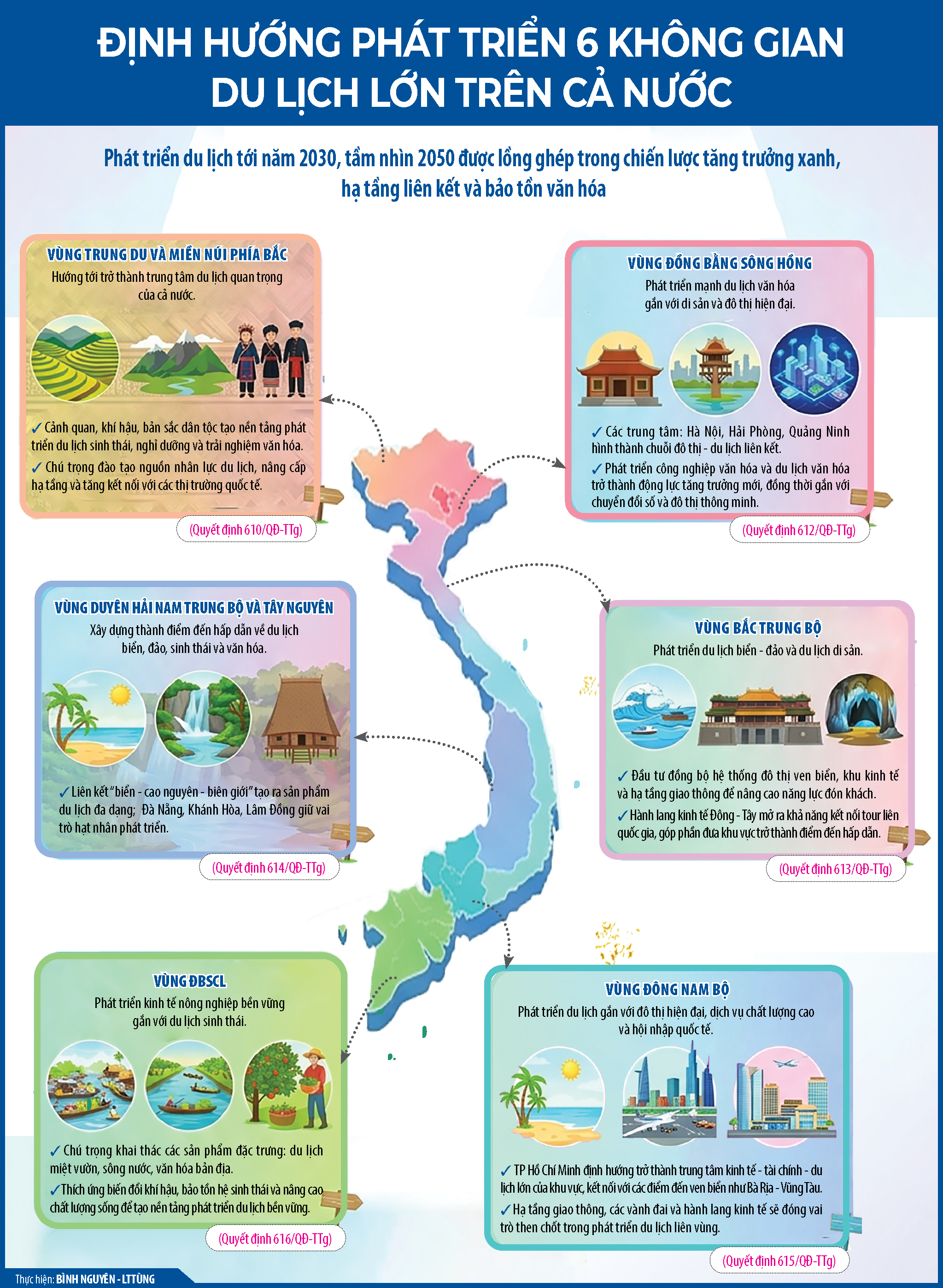 [INFOGRAPHICS] Định hướng phát triển 6 không gian du lịch lớn trên cả nước