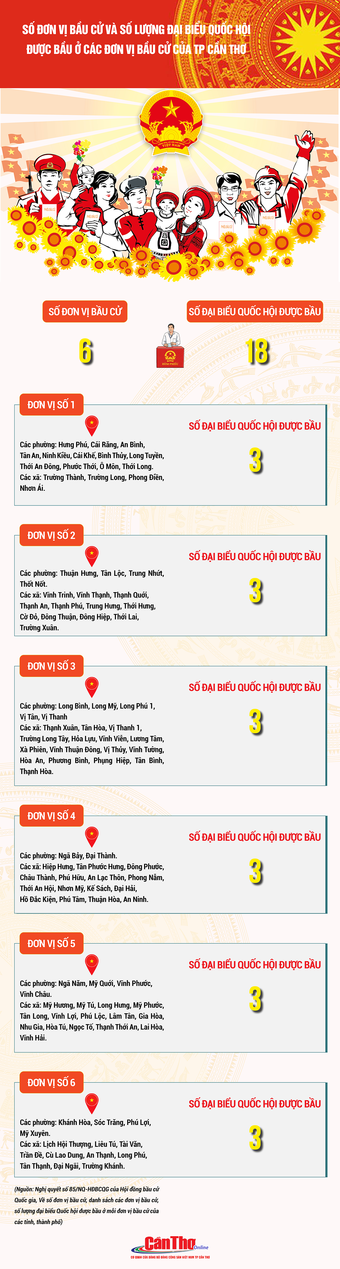 - [INFOGRAPHICS] Số đơn vị bầu cử và số lượng đại biểu Quốc hội được bầu ở các đơn vị bầu cử của TP Cần Thơ