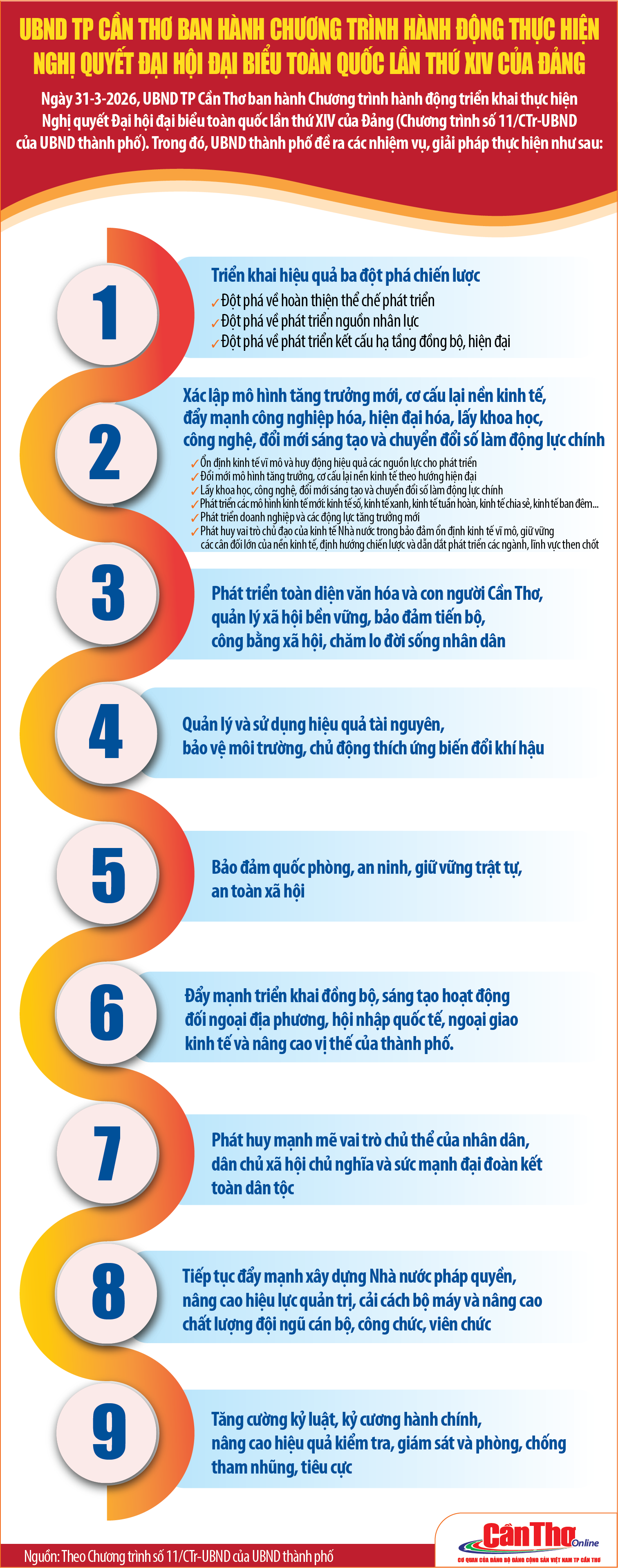 [INFOGRAPHICS] UBND TP Cần Thơ ban hành chương trình hành động thực hiện Nghị quyết Đại hội đại biểu toàn quốc lần thứ XIV của Đảng