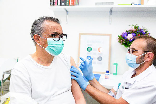 Tổng Giám đốc WHO Tedros Ghebreyesus tiêm vaccine COVID-19.