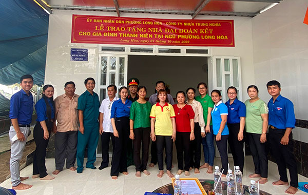 Bên cạnh đó, cấp ủy, chính quyền, Mặt trận và các đoàn thể phường Long Hòa còn vận động xây dựng nhà, giúp người dân “an cư lạc nghiệp”. Anh Trương Văn Sơn ở khu vực Bình Yên A, chia sẻ: “Căn nhà cũ của tôi làm bằng cây, vách lá, mái tôn đã xuống cấp. Tôi làm thợ hồ, vợ ở nhà chăm con nhỏ, cuộc sống khó khăn, không có tiền sửa nhà. Nhờ sự hỗ trợ của cán bộ phường, gia đình tôi mới có được căn nhà tường kiên cố”. Từ năm 2021 đến nay, cán bộ hệ thống chính trị phường Long Hòa đã phối hợp vận động xây dựng và sửa chữa 23 căn nhà Ðại đoàn kết, trị giá hơn 1,1 tỉ đồng.
