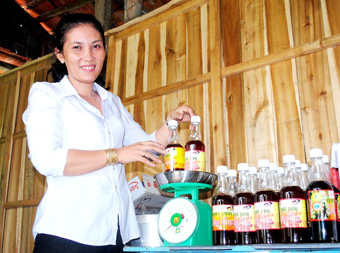 Mật ong tại Công ty U Minh Hạ sau khi được tách bớt nước, đóng chai.