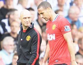 Giải ngoại hạng Anh 2011-2012 mới qua một vòng đấu, nhưng Manchester United (M.U) đã tổn thất nặng khi cặp trung vệ số một Rio Ferdinand (ảnh, phải) và Nemanja Vidic bị chấn thương. Rio Ferdinand sẽ phải nghỉ 6 tuần còn Vidic vài tuần dưỡng thương; hậu vệ Rafael cũng bị chấn thương trong tập luyện, sẽ phải “ngồi chơi xơi nước” 10 tuần; hậu vệ cánh Evra thì đang bình phục chấn thương. M.U sắp gặp Tottenham và Arsenal hai đội có hàng công rất đáng gờm.