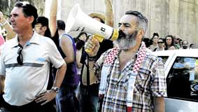 Ông Gordillo (phải) và những người ủng hộ kêu gọi chính quyền thả những người bị bắt sau các vụ “đột kích” siêu thị. Ảnh: thecourier.es