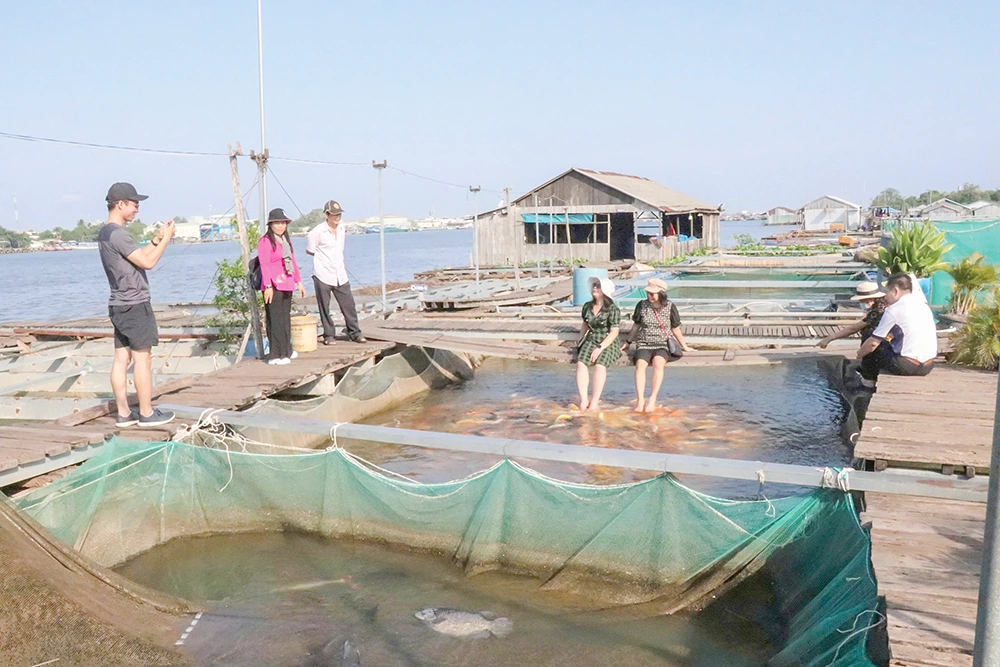 Bè cá của ông Lý Văn Bon được nhiều du khách đến tham quan, trải nghiệm.