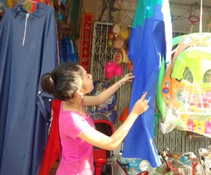 với nhiều gam màu rất tinh nghịch và dễ thương cho các bạn nhỏ lựa chọn; giá từ 20.000-60.000 đồng/áo tùy theo tuổi. Chị Nguyễn Thị Hoa, ở phường An Hội, quận Ninh Kiều, cho biết: "Mùa mưa đã đến, tôi trang bị cho con một áo mưa cánh dơi để kèm trong cặp phòng khi mưa để sử dụng. Các loại áo mưa hiện nay khá phong phú về kiểu dáng, màu sắc, hình ảnh rất sinh động nên giúp các bé thích mặc áo mưa hơn. Tôi cũng đã mua một áo mưa cho chồng phòng khi thời tiết xấu"...