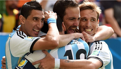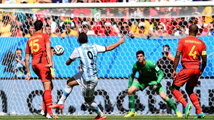 Thực hiện ý đồ chiến thuật của HLV, với kỹ thuật và khả năng của ngôi sao hàng đầu, Messi liên tục di chuyển ở phía xa khung thành thủ môn Courtois để nhận bóng của đồng đội và hút theo các hậu vệ Bỉ. Chiến thuật này của ông Sabella đã có hiểu quả. Tuyến phòng ngự của đội tuyển Bỉ bộc lộ sơ hở và các cầu thủ Argentina có được cơ hội ghi bàn. Phút thứ 8, Messi dẫn bóng từ khu vực giữa sân, đi bóng lắt léo qua hai tiền vệ của Bỉ và chuyền bóng ra cánh trái cho D. Maria. Cầu thủ này tạt bóng vào trong, bóng chạm chân cầu thủ Bỉ, đến chân G.Higuain. Tiền đạo này lập tức tung cú vô-lê cực kỳ hiểm hóc, buộc thủ môn Courtois phải vào lưới nhặt bóng, mở tỉ số cho Argentina. Đây cũng là bàn thắng duy nhất trong trận đấu có nhiều pha bóng gây “nghẹt thở” đối với cổ động viên hai đội.