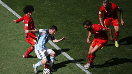 L.Messi luôn bị các hậu vệ Bỉ “chăm sóc” rất kỹ |