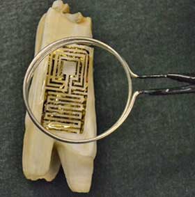 Các nhà khoa học Mỹ vừa phát triển thành công loại máy cảm biến siêu mỏng, có thể xăm lên răng (ảnh) và hoạt động như một “hệ thống cảnh báo sớm” siêu nhạy về bệnh tật của người dùng.
