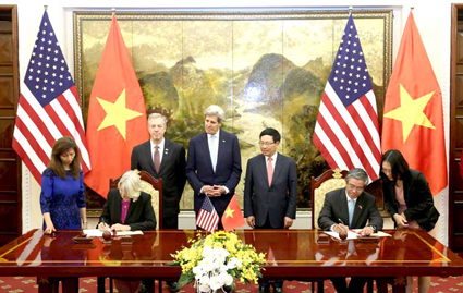 Trước cuộc Hội đàm, Phó Thủ tướng, Bộ trưởng Ngoại giao Phạm Bình Minh và Ngoại trưởng Hoa Kỳ John Kerry đã chứng kiến lễ ký Ý định thư về Sáng kiến lưu trữ vật tư y tế và hợp tác nhân đạo nhằm phục vụ hợp tác nhân đạo giữa hai nước trong tìm kiếm quân nhân Hoa Kỳ mất tích, cứu hộ, cứu nạn và ứng phó với thảm họa thiên nhiên; Thư thỏa thuận về hỗ trợ thực thi pháp luật và tư pháp hình sự và Hiệp định khung về việc Việt Nam cho phép một số tình nguyện viên Hoa Kỳ dạy tiếng Anh tại thành phố Hà Nội và thành phố Hồ Chí Minh trong khuôn khổ “Chương trình Hòa bình”. |