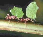 Loài kiến này có thân hình khẳng khiu như đồng loại, nhưng bộ hàm khỏe của chúng có thể xén trụi những tán lá nặng hơn gấp 50 lần trọng lượng cơ thể. Điều này giống một người có thể nâng được vật nặng 2,5 tấn. Kiến xén lá có thể tạo nên những cộng đồng thuộc hàng phức tạp nhất trong thế giới động vật, với “dân số” có khi lên đến 8 triệu con với những nhóm kiến đặc trách nhiệm vụ riêng biệt. Chúng không ăn lá cây nhưng lại thu gom lá cây về để lập “trang trại” trồng nấm và nấm chính là thức ăn của chúng.