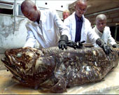 Cá vây tay được cho đã tuyệt chủng từ cuối kỷ Phấn trắng cách đây hơn 65 triệu năm. Mãi đến năm 1938, người ta phát hiện loài cá này ở ngoài khơi bờ biển phía Đông của Nam Phi gần cửa sông Chalumna (ảnh). Là họ hàng gần với những loài cá nước ngọt thở bằng phổi và động vật 4 chân, cá vây tay là một trong những loài cá có hàm lâu đời nhất vẫn còn sống hiện nay. Chúng có thể sống đến 100 năm và bơi ở độ sâu 90-100 m.