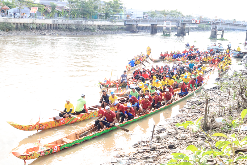 16 đội ghe Ngo tranh tài tại Giải đua ghe Ngo mini ở xã Kế Sách