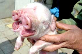 Một con heo con được nuôi ở tỉnh Cát Lâm, Trung Quốc đã khiến người chủ phải “méo mặt” vì ăn gấp đôi mấy con khác trong đàn. Sở dĩ tham ăn là vì heo ta có đến 2 cái mõm và cả 2 đều hoạt động được như nhau.