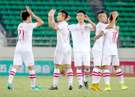 Các cầu thủ U23 Lào giành trọn 3 điểm trước U23 Brunei.