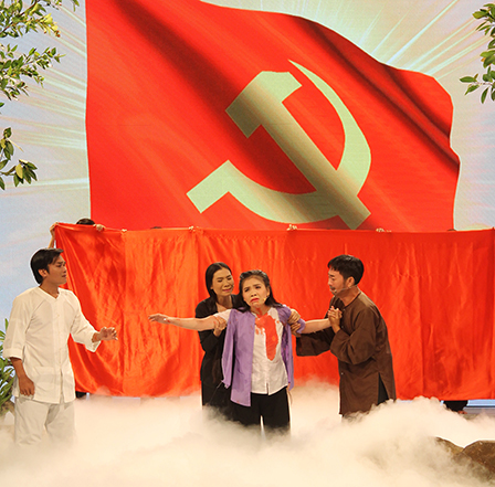 Nhưng có lẽ, vai diễn ấn tượng trong vở là Hương (nghệ sĩ Diễm My đóng), một cô gái quê giác ngộ cách mạng. Vở diễn được đẩy lên cao trào khi Hương bị lính Tây bắn, trước lúc hấp hối trong vòng tay đồng đội vẫn bày tỏ ước vọng trở thành đảng viên. Thầy giáo Phan Ngọc Hiển đã thay mặt tổ chức công nhận Hương là đảng viên trước khi cô nhắm mắt. Lớp diễn xúc động nhờ giọng ca mùi mẫn và diễn xuất có hồn của Diễm My. Tạo tiếng cười trong vở là nhân vật Đình (Hoàng Dững thủ vai), bạn trai của Hương. Đình tính tình ngay thẳng, bộc trực, không biết chữ, nghĩ gì nói nấy, làm nấy; nên đôi khi sai lầm. Hoàng Dững thể hiện thành công những lớp diễn đắt như đoạn Đình ngô nghê học đánh vần, giận dỗi người yêu...