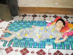 Hồng Ngọc- suốt ngày phải nằm trong tư thế này. |