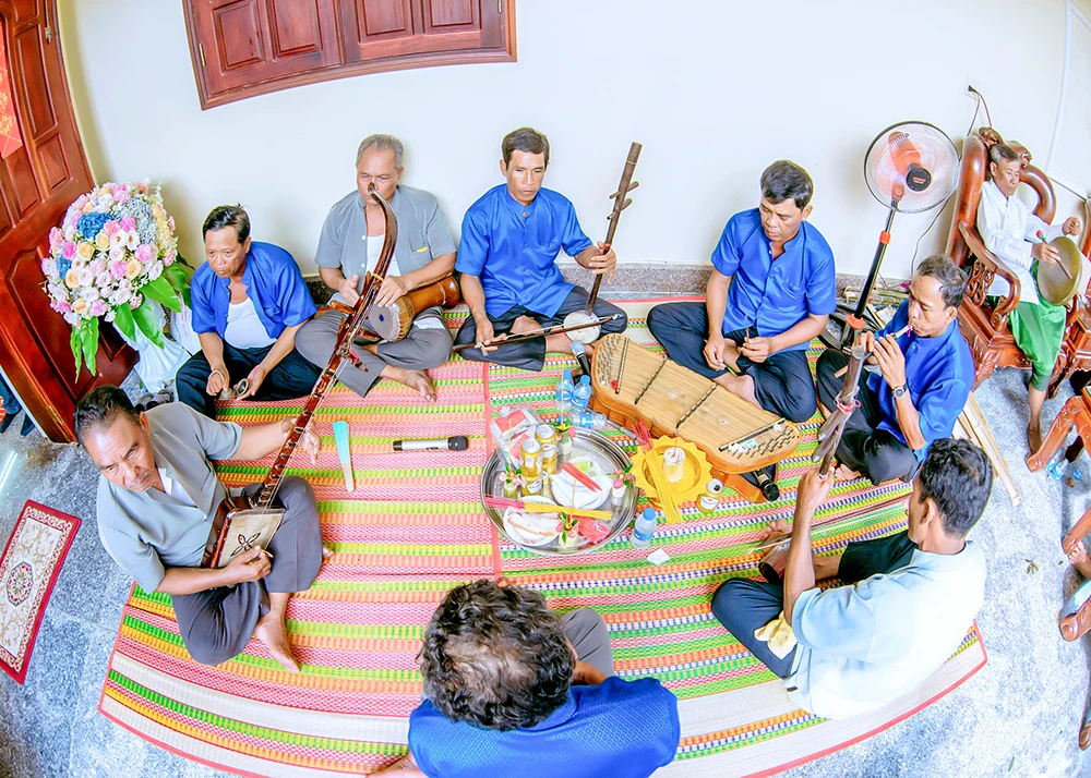 Trong lễ cưới của đồng bào Khmer, tiếng nhạc mở cổng rào, cột tay… không chỉ thuộc về nghi thức mà còn là linh hồn buổi lễ. Âm nhạc dẫn dắt từng bước chuyển của nghi lễ, gắn kết hai họ, gửi gắm ước vọng hạnh phúc bền lâu.