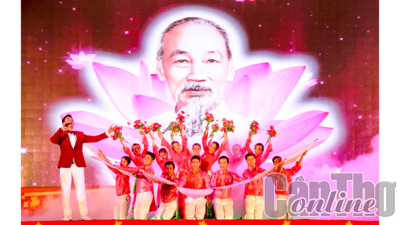 Tiết mục nghệ thuật ca ngợi Chủ tịch Hồ Chí Minh trong chương trình nghệ thuật diễn ra tại TP Cần Thơ.