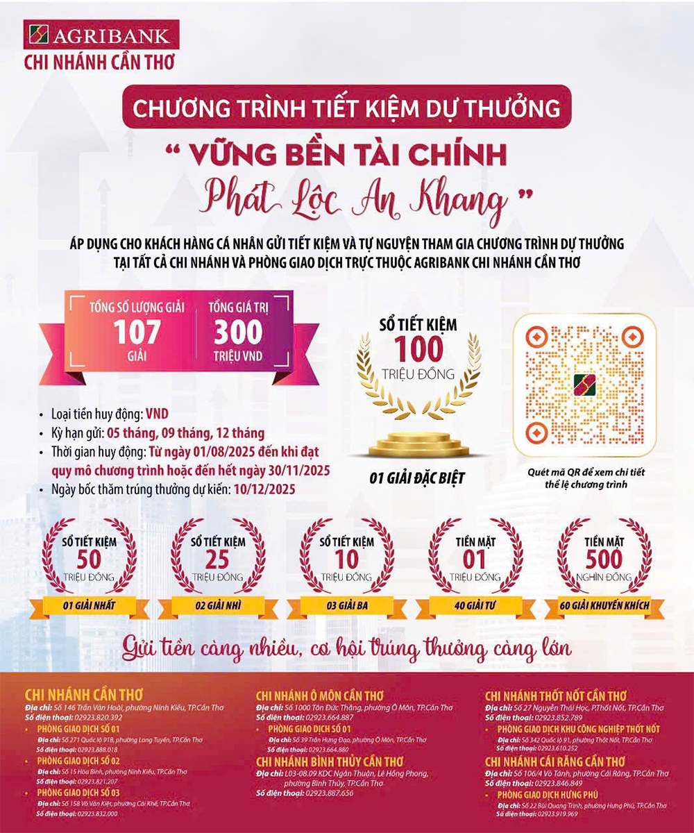 - Agribank Chi nhánh Cần Thơ tổ chức bốc thăm chương trình "Vững bền tài chính - Phát lộc an khang"