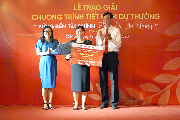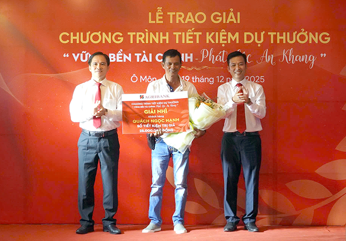 Agribank Chi nhánh Cần Thơ trao giải chương trình Tiết kiệm dự thưởng "Vững bền tài chính - Phát lộc an khang"