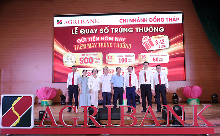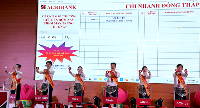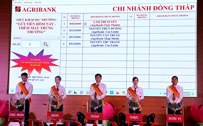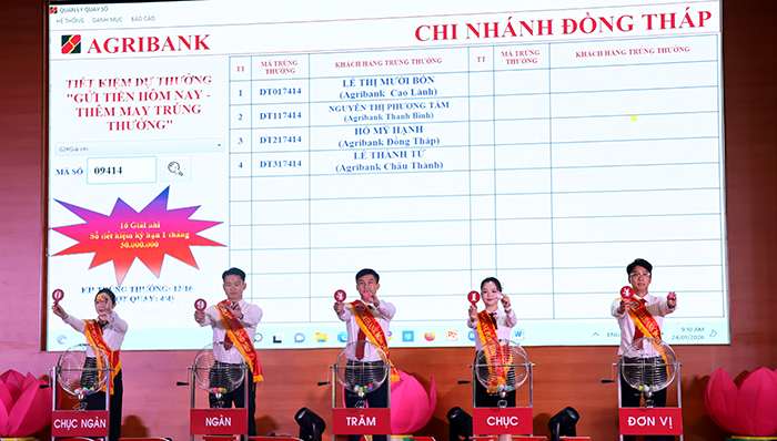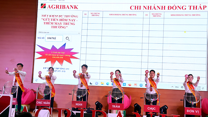Agribank Chi nhánh Đồng Tháp quay số xác định các khách hàng may mắn của chương trình "Gửi tiền hôm nay - Thêm may trúng thưởng"