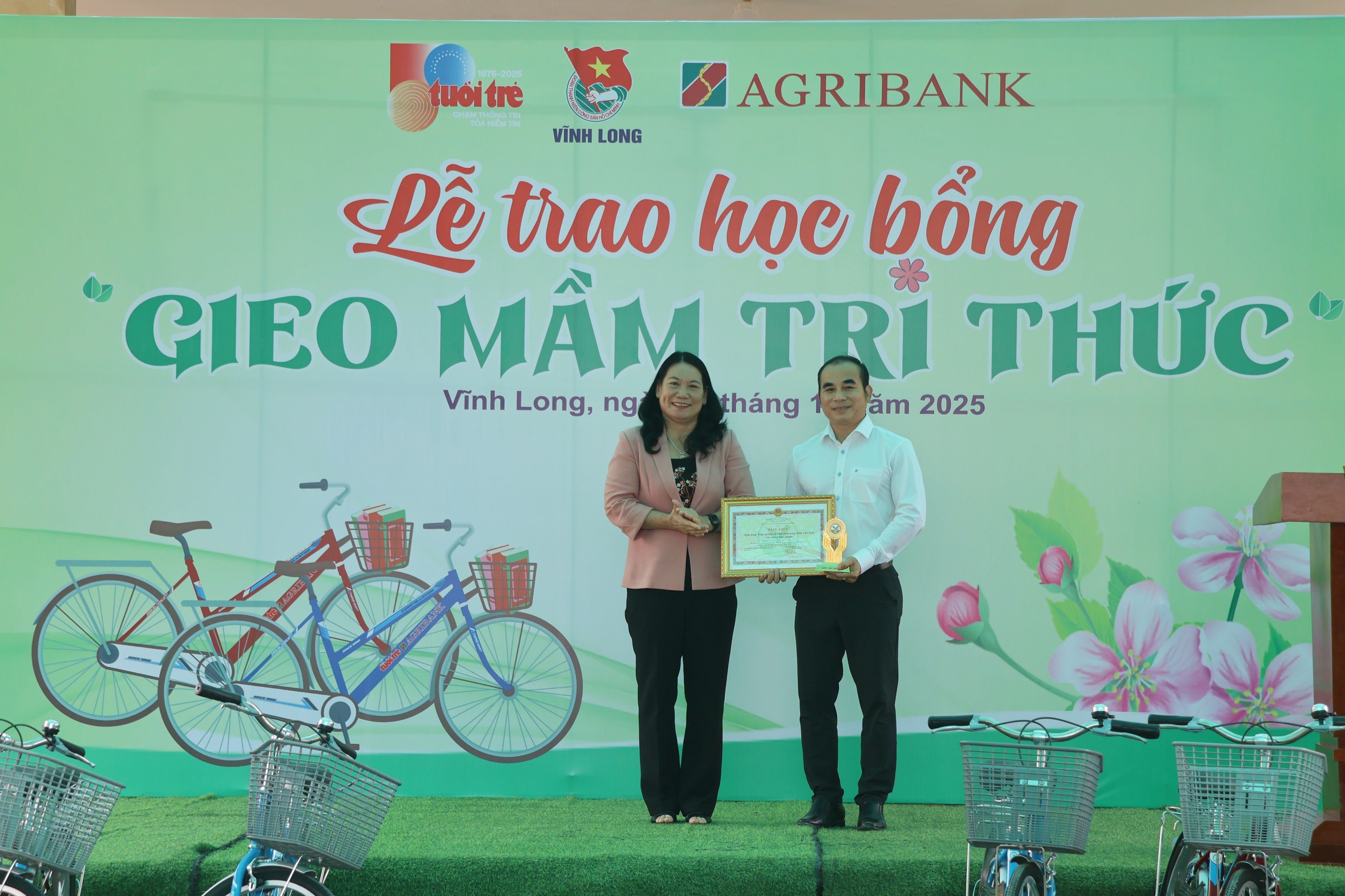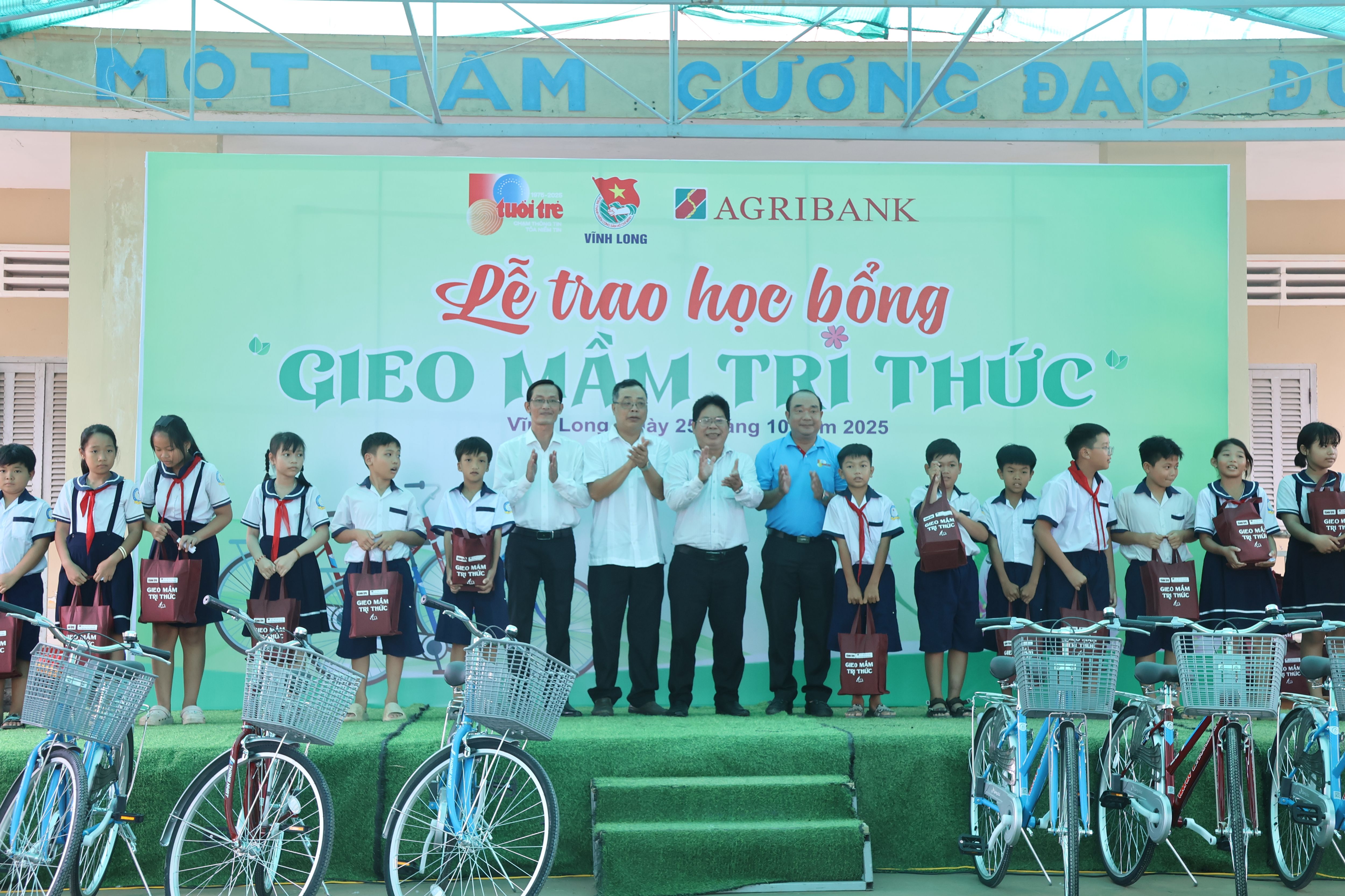 Agribank Chi nhánh Phú Nhuận phối hợp cùng Báo Tuổi trẻ trao học bổng "Gieo mầm tri thức" tại tỉnh Vĩnh Long