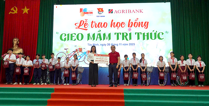 - Agribank Chi nhánh Phú Nhuận trao học bổng "Gieo mầm tri thức" cho học sinh có hoàn cảnh khó khăn tại tỉnh Tây Ninh