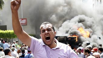 Những người ủng hộ ông Morsi lên án cuộc trấn áp của quân đội Ai Cập. Ảnh: AP