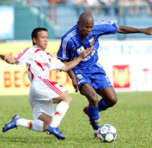 Tiền đạo Philani (phải) đang cùng B.BD bứt phá nhanh về đích. Ảnh: Vietbao.vn |
