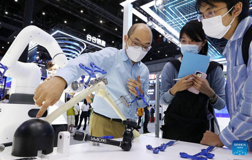 Khách tham quan tại Hội nghị Trí tuệ Nhân tạo Thế giới (WAIC) ở Thượng Hải. Ảnh: Xinhua