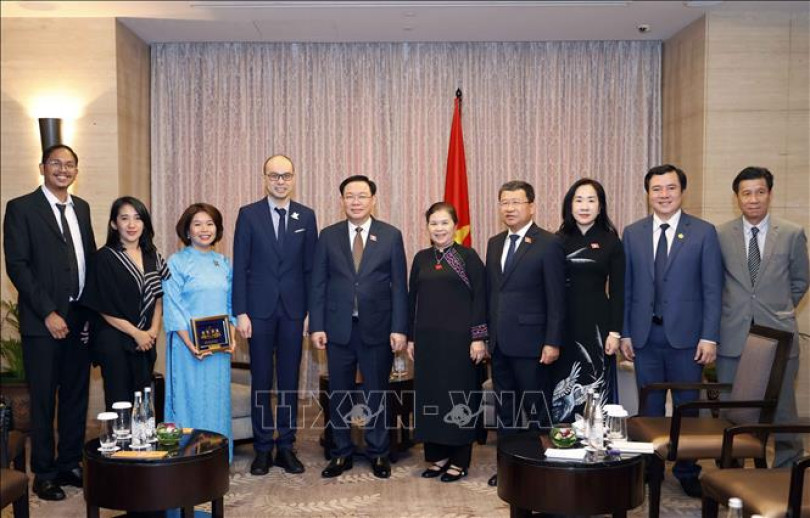 Chủ tịch Quốc hội Vương Đình Huệ tiếp lãnh đạo các tập đoàn kinh tế lớn của Indonesia sáng 5-8. Ảnh: TTXVN
