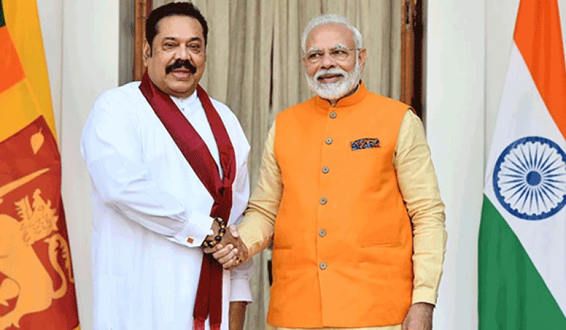 Thủ tướng Ấn Ðộ Narendra Modi (phải) trong một cuộc gặp với người đồng cấp Sri Lanka Mahinda Rajapaksa. Ảnh: AFP