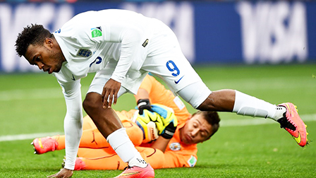 Daniel Sturridge nỗ lực trước sự chắc chắn của thủ môn Muslera. Ảnh: Getty