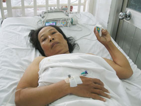 Nằm đối diện với chị Tiếu là chị Nguyễn Thị Son, ở xã Trường Xuân, huyện Thới Lai, TP Cần Thơ. Chị Son cũng mổ được hơn 2 ngày. Chị bị u xơ tử cung. Do khối u lớn, bác sĩ đã cắt trọn tử cung. Sau mổ chị không đau do được bác sĩ gây tê. Chị cũng chuẩn bị tinh thần để chịu cơn đau khi thuốc tê hết. Nhưng mổ xong, các bác sĩ dặn chị, khi nào đau quá, chị cứ bóp vào nút bấm của máy PCA là thuốc tự động truyền vào người, sẽ không còn cảm thấy đau nữa. Tuy nhiên, bác sĩ cũng dặn khoảng 10 phút mới được bóp 1 lần. Do cảm thấy không đau lắm vì đã có thuốc tê truyền trực tiếp nên chị Son chỉ mới phải bấm máy PCA có 2 lần. Chị Son cười nói: “Tôi thấy không đau gì cả. Sáng nay, tôi đã ăn cháo. Tôi khỏe rồi nên mong bác sĩ cho xuất viện sớm”.
