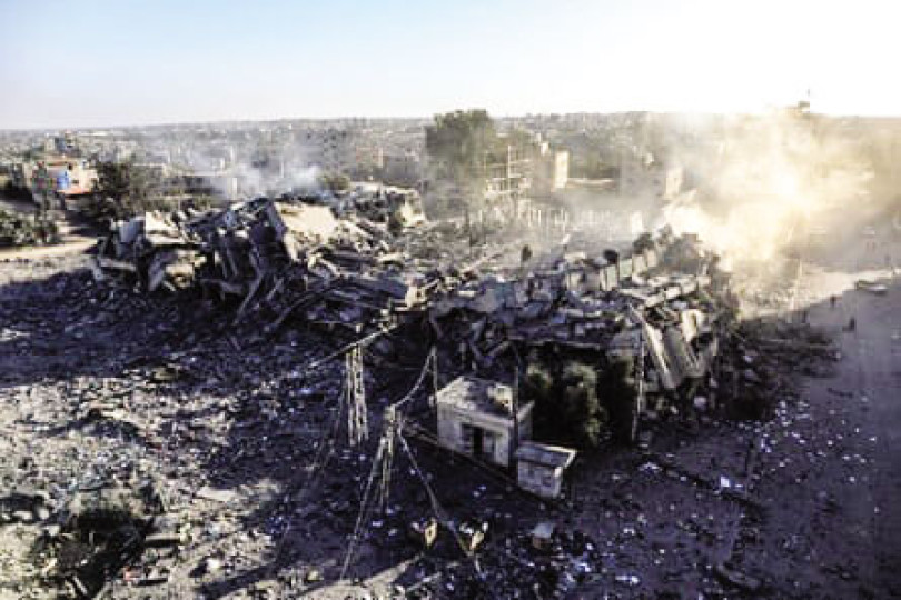 Trung tâm thành phố Gaza bị tàn phá sau đợt không kích của Israel. Ảnh: THX