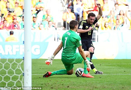 Mata sút góc hẹp bóng đi qua 2 chân thủ thành Ryan ấn định chiến thắng 3-0 cho tuyển Tây Ban Nha. Ảnh: Getty.
