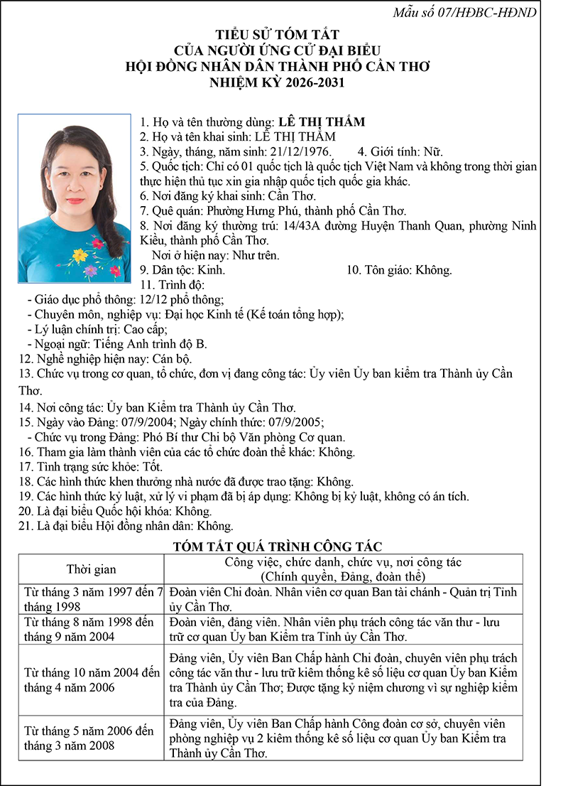 Nghị quyết về việc lập và công bố danh sách chính thức những người ứng cử đại biểu Hội đồng nhân dân thành phố Cần Thơ nhiệm kỳ 2026-2031 theo từng đơn vị bầu cử
