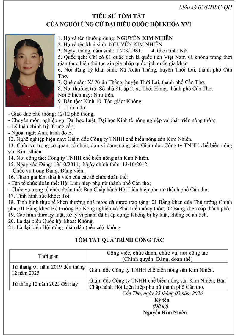 Nghị quyết về việc lập và công bố danh sách chính thức những người ứng cử đại biểu Hội đồng nhân dân thành phố Cần Thơ nhiệm kỳ 2026-2031 theo từng đơn vị bầu cử