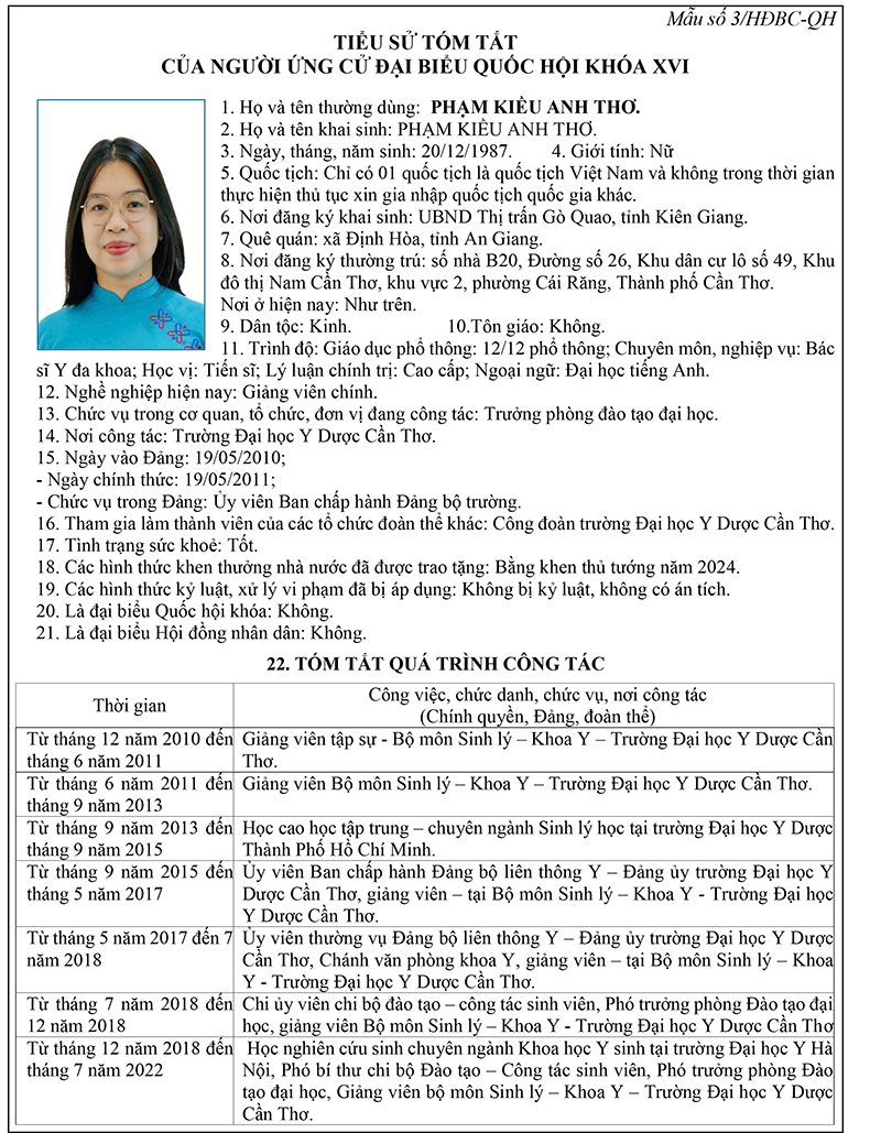 - [INFOGRAPHICS] Kết quả hiệp thương lần thứ 3 lập danh sách những người đủ tiêu chuẩn ứng cử đại biểu Quốc hội khóa XVI do TP Cần Thơ giới thiệu