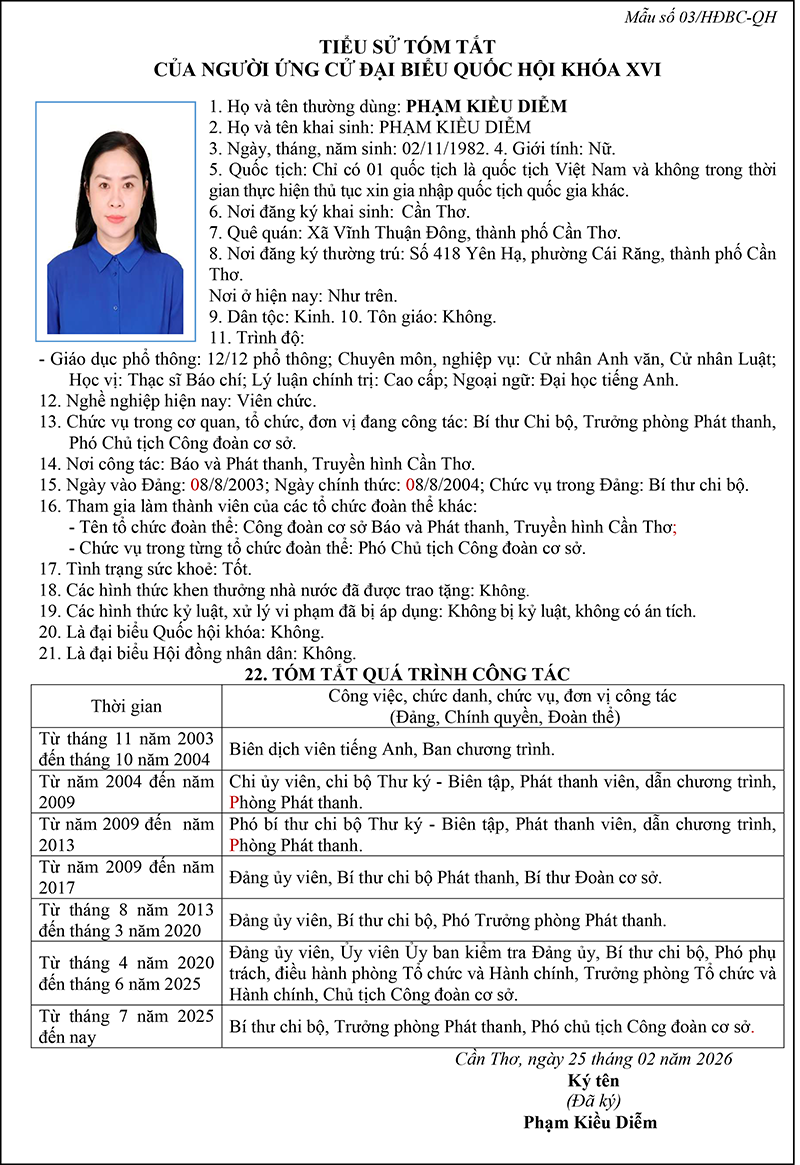- [INFOGRAPHICS] Kết quả hiệp thương lần thứ 3 lập danh sách những người đủ tiêu chuẩn ứng cử đại biểu Quốc hội khóa XVI do TP Cần Thơ giới thiệu