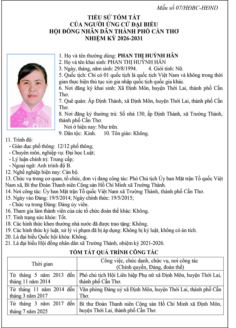 Nghị quyết về việc lập và công bố danh sách chính thức những người ứng cử đại biểu Hội đồng nhân dân thành phố Cần Thơ nhiệm kỳ 2026-2031 theo từng đơn vị bầu cử