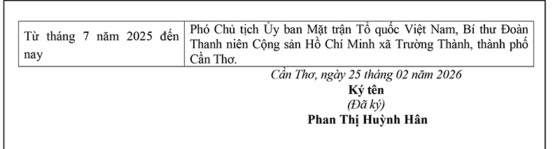Bà Phan Thị Huỳnh Hân – Phó Chủ tịch Ủy ban MTTQVN xã, Bí thư Đoàn TNCS HCM xã Trường Thành, TP. Cần Thơ